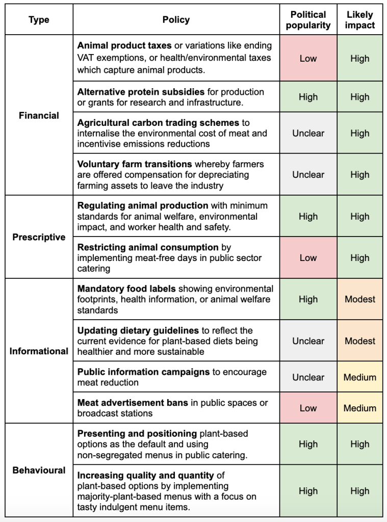 “The summary outlines various policy approaches aimed at reducing meat production and consumption in wealthy nations, highlighting their potential benefits for the environment, public health, economy, food security, and animal welfare. – Chris Bryant